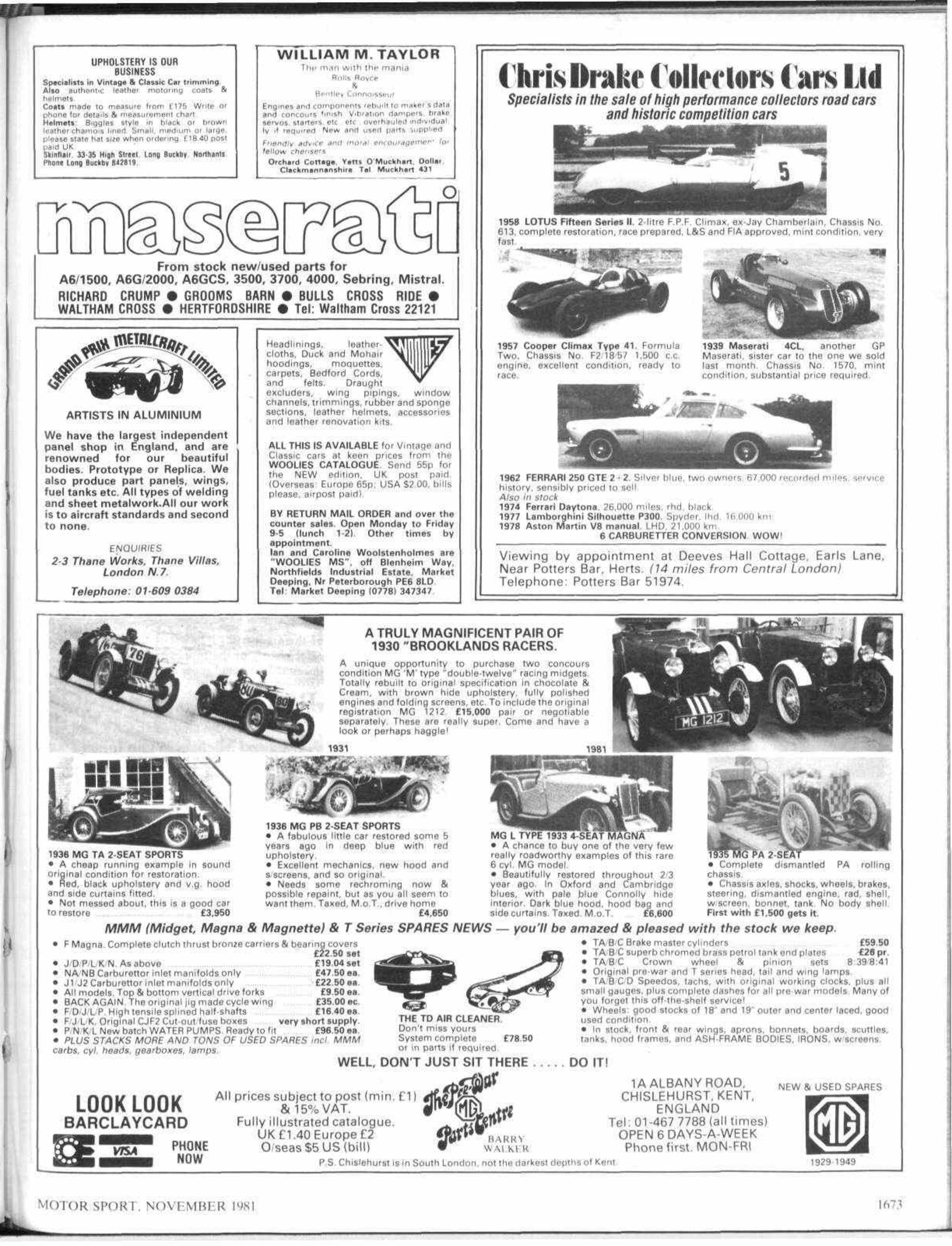 A section devoted to old car matters